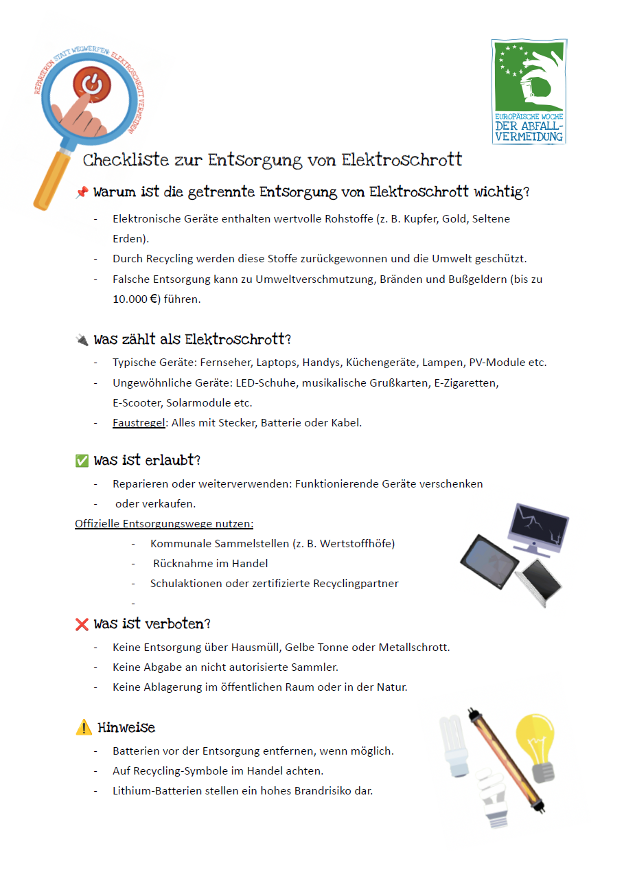 Infos zur Europäischen Woche der Abfallvermeidung 2025 zum Thema Vermeidung von Elektroschrott